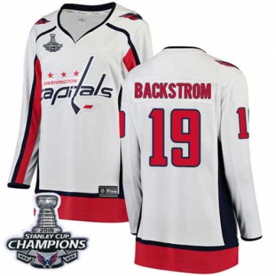 Women's Washington Capitals #19 Nicklas Backstrom Fanatics Branded White Away Breakaway 2018 Stanley Cup Final Champions NHL Jersey