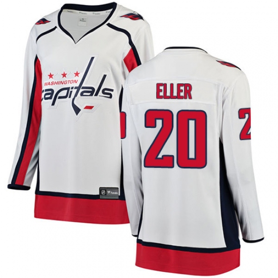Home>NHL>Washington Capitals>Lars Eller>Women's Washington Capitals #20 Lars Eller Fanatics Branded White Away Breakaway NHL Jersey
