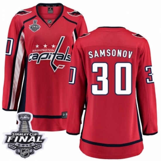 Women's Washington Capitals #30 Ilya Samsonov Fanatics Branded Red Home Breakaway 2018 Stanley Cup Final NHL Jersey