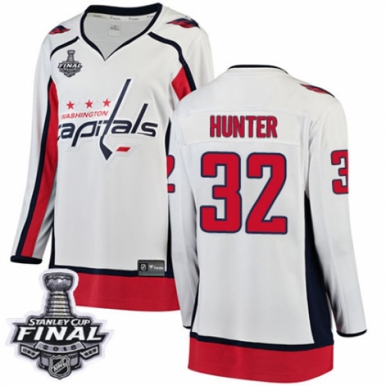 Women's Adidas Washington Capitals #32 Dale Hunter Authentic White Away 2018 Stanley Cup Final NHL Jersey