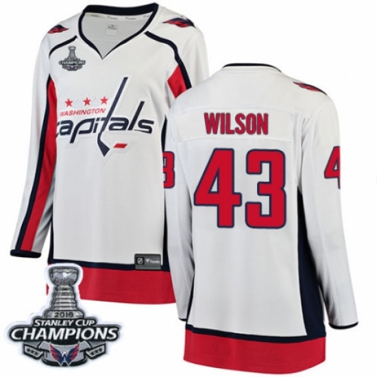 Women's Washington Capitals #43 Tom Wilson Fanatics Branded White Away Breakaway 2018 Stanley Cup Final Champions NHL Jersey
