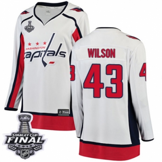 Women's Washington Capitals #43 Tom Wilson Fanatics Branded White Away Breakaway 2018 Stanley Cup Final NHL Jersey