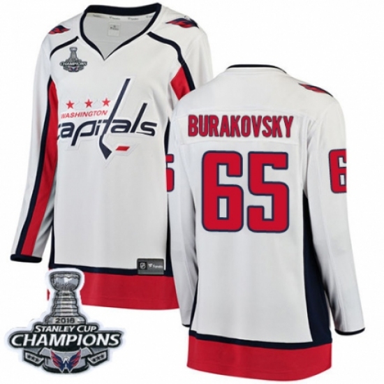 Women's Washington Capitals #65 Andre Burakovsky Fanatics Branded White Away Breakaway 2018 Stanley Cup Final Champions NHL Jersey