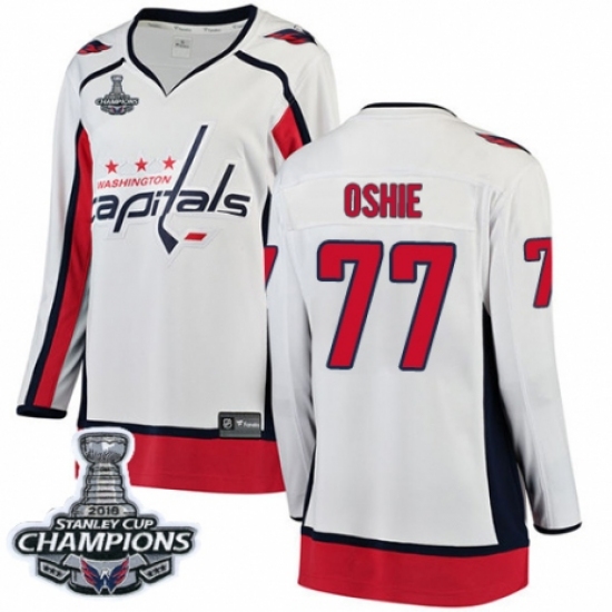 Women's Washington Capitals #77 T.J. Oshie Fanatics Branded White Away Breakaway 2018 Stanley Cup Final Champions NHL Jersey