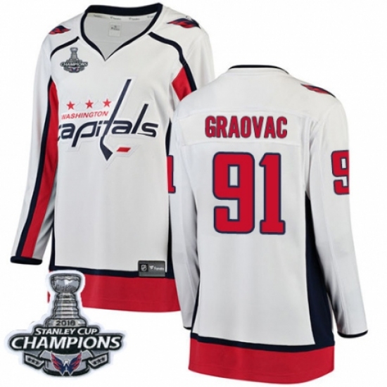 Women's Washington Capitals #91 Tyler Graovac Fanatics Branded White Away Breakaway 2018 Stanley Cup Final Champions NHL Jersey