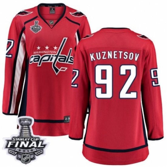 Women's Washington Capitals #92 Evgeny Kuznetsov Fanatics Branded Red Home Breakaway 2018 Stanley Cup Final NHL Jersey