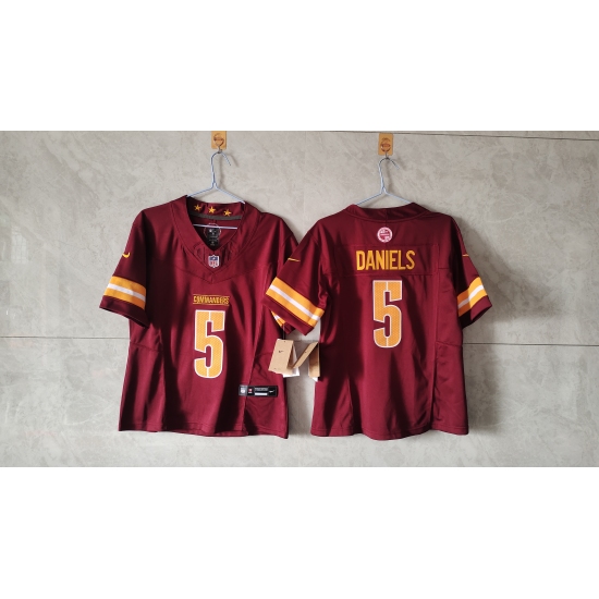 >Women's Washington Commanders #5 Jayden Daniels Burgundy 2024 F.U.S.E. Draft Stitched Jersey(Run Small)