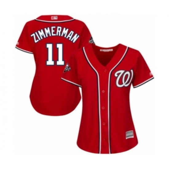 Women's Washington Nationals #11 Ryan Zimmerman Authentic Red Alternate 1 Cool Base 2019 World Series Bound Baseball Jersey