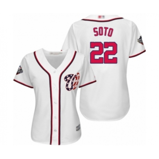 Women's Washington Nationals #22 Juan Soto Authentic White Home Cool Base 2019 World Series Bound Baseball Jersey