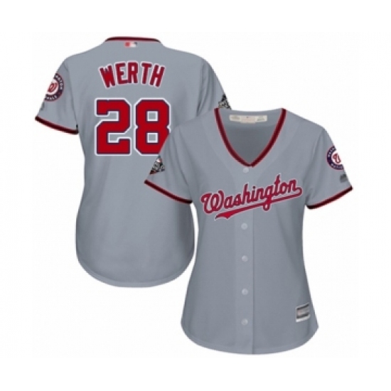 Women's Washington Nationals #28 Jayson Werth Authentic Grey Road Cool Base 2019 World Series Bound Baseball Jersey