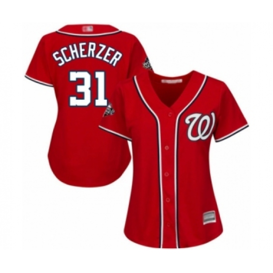 Women's Washington Nationals #31 Max Scherzer Authentic Red Alternate 1 Cool Base 2019 World Series Bound Baseball Jersey