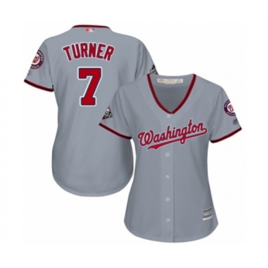 Women's Washington Nationals #7 Trea Turner Authentic Grey Road Cool Base 2019 World Series Bound Baseball Jersey