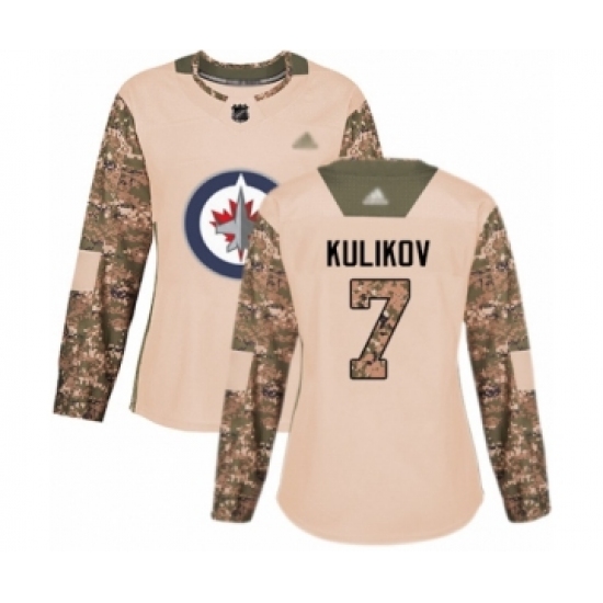 Women's Winnipeg Jets #7 Dmitry Kulikov Authentic Camo Veterans Day Practice Hockey Jersey