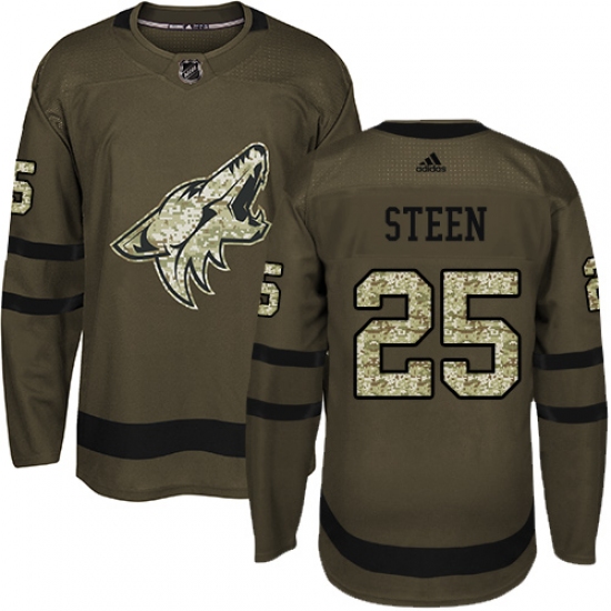Home>NHL>Arizona Coyotes>Thomas Steen>Youth Adidas Arizona Coyotes #25 Thomas Steen Authentic Green Salute to Service NHL Jersey