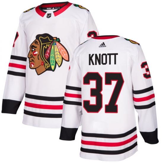 Youth Adidas Chicago Blackhawks #37 Graham Knott Authentic White Away NHL Jersey