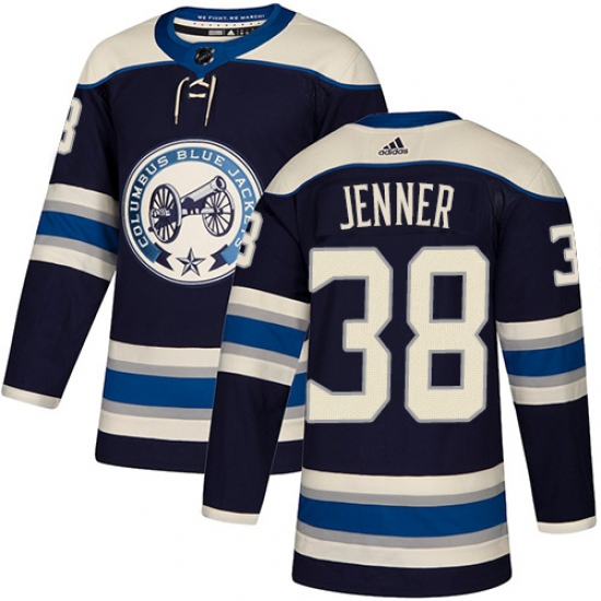>Youth Adidas Columbus Blue Jackets #38 Boone Jenner Authentic Navy Blue Alternate NHL Jersey