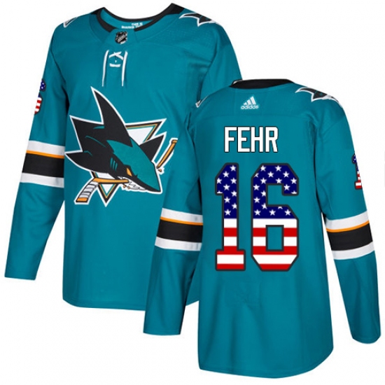 Youth Adidas San Jose Sharks #16 Eric Fehr Authentic Teal Green USA Flag Fashion NHL Jersey