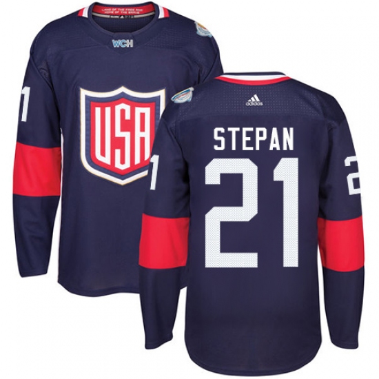 Home>NHL>Team USA>Derek Stepan>Youth Adidas Team USA #21 Derek Stepan Authentic Navy Blue Away 2016 World Cup Ice Hockey Jersey