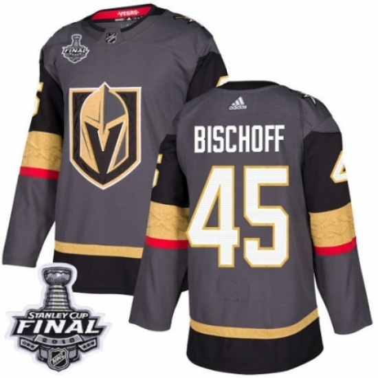 Youth Adidas Vegas Golden Knights #45 Jake Bischoff Authentic Gray Home 2018 Stanley Cup Final NHL Jersey