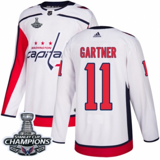 Women's Adidas Washington Capitals #11 Mike Gartner Authentic White Away 2018 Stanley Cup Final Champions NHL Jersey