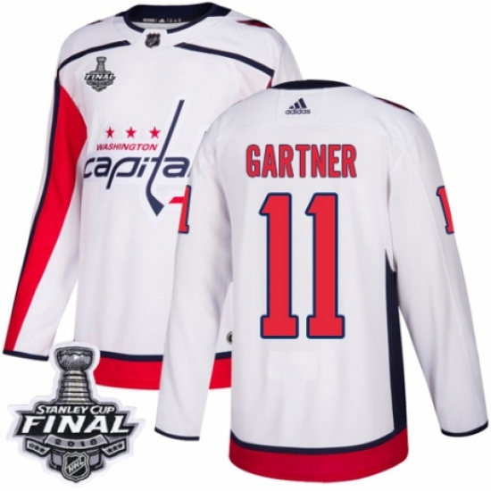 Women's Adidas Washington Capitals #11 Mike Gartner Authentic White Away 2018 Stanley Cup Final NHL Jersey