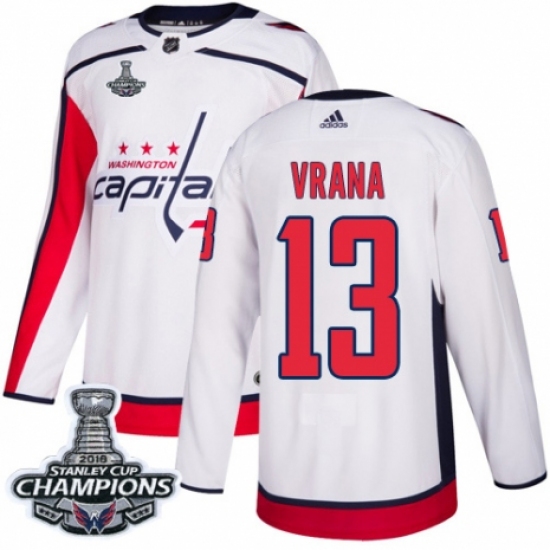 Youth Adidas Washington Capitals #13 Jakub Vrana Authentic White Away 2018 Stanley Cup Final Champions NHL Jersey