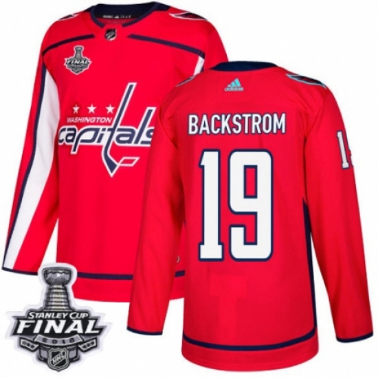 Men's Adidas Washington Capitals #19 Nicklas Backstrom Premier Red Home 2018 Stanley Cup Final Champions NHL Jersey