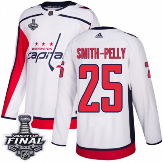 Women's Adidas Washington Capitals #25 Devante Smith-Pelly Authentic White Away 2018 Stanley Cup Final NHL Jersey