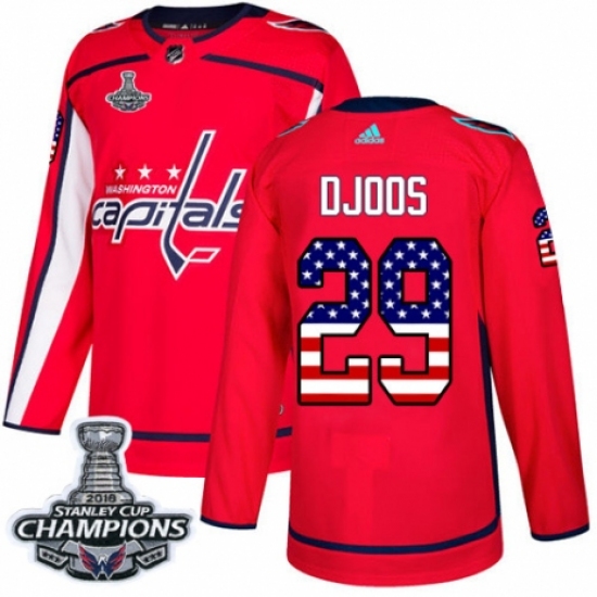Men's Adidas Washington Capitals #29 Christian Djoos Authentic Red USA Flag Fashion 2018 Stanley Cup Final Champions NHL Jersey