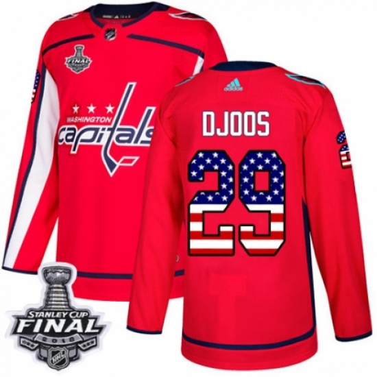 Youth Adidas Washington Capitals #29 Christian Djoos Authentic Red USA Flag Fashion 2018 Stanley Cup Final NHL Jersey