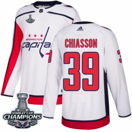 Youth Adidas Washington Capitals #39 Alex Chiasson Authentic White Away 2018 Stanley Cup Final Champions NHL Jersey