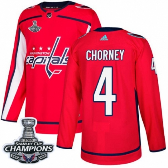 Youth Adidas Washington Capitals #4 Taylor Chorney Authentic Red Home 2018 Stanley Cup Final Champions NHL Jersey