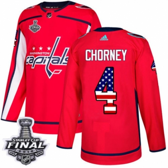 Youth Adidas Washington Capitals #4 Taylor Chorney Authentic Red USA Flag Fashion 2018 Stanley Cup Final NHL Jersey