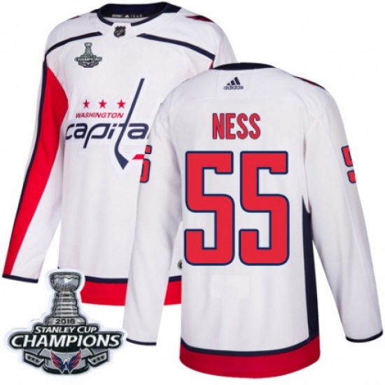 Women's Adidas Washington Capitals #55 Aaron Ness Authentic White Away 2018 Stanley Cup Final Champions NHL Jersey