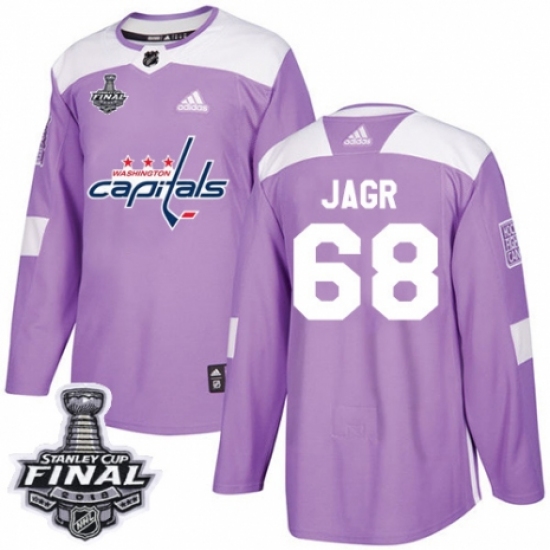 >Youth Adidas Washington Capitals #68 Jaromir Jagr Authentic Purple Fights Cancer Practice 2018 Stanley Cup Final NHL Jersey