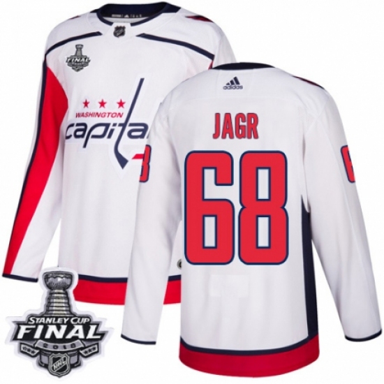 Youth Adidas Washington Capitals #68 Jaromir Jagr Authentic White Away 2018 Stanley Cup Final NHL Jersey