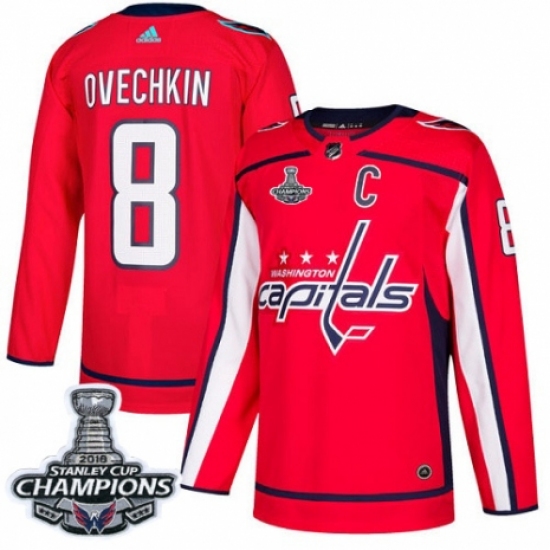Youth Adidas Washington Capitals #8 Alex Ovechkin Authentic Red Home 2018 Stanley Cup Final Champions NHL Jersey