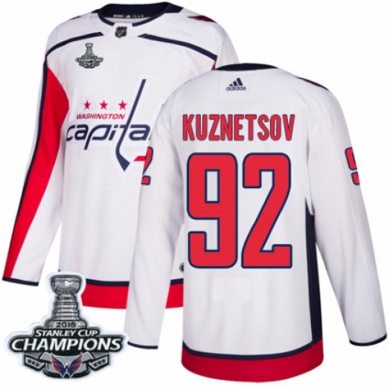 Youth Adidas Washington Capitals #92 Evgeny Kuznetsov Authentic White Away 2018 Stanley Cup Final Champions NHL Jersey