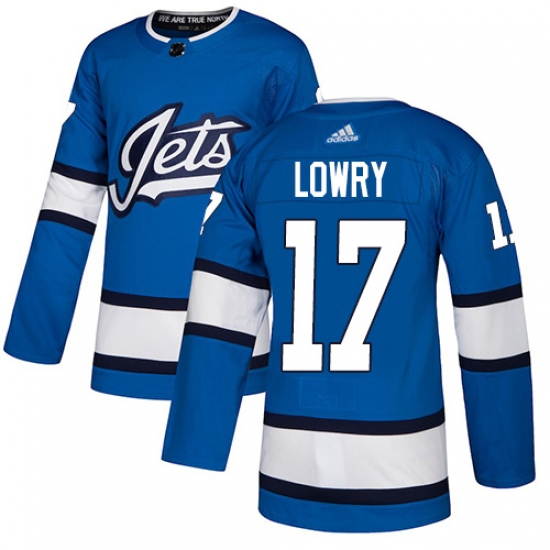 >Youth Adidas Winnipeg Jets #17 Adam Lowry Authentic Blue Alternate NHL Jersey