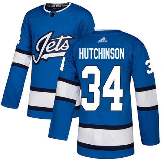 Men's Adidas Winnipeg Jets #34 Michael Hutchinson Authentic Blue Alternate NHL Jersey