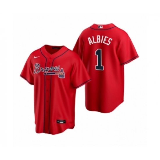 >Youth Atlanta Braves #1 Ozzie Albies Nike Red 2020 Replica Alternate Jersey