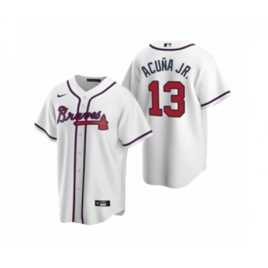 >Youth Atlanta Braves #13 Ronald Acuna Jr. Nike White 2020 Replica Home Jersey