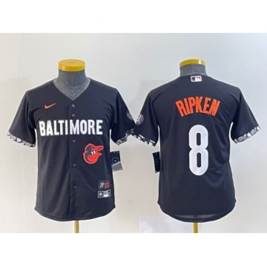 Youth Baltimore Orioles #8 Cal Ripken Jr Black 2023 City Connect Cool Base Stitched Jersey