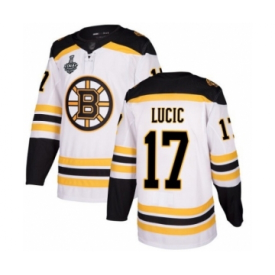 Youth Boston Bruins #17 Milan Lucic Authentic White Away 2019 Stanley Cup Final Bound Hockey Jersey