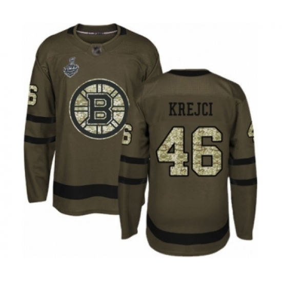 Youth Boston Bruins #46 David Krejci Authentic Green Salute to Service 2019 Stanley Cup Final Bound Hockey Jersey