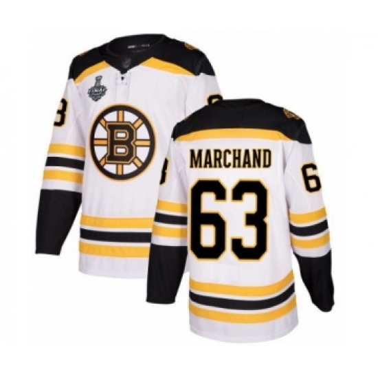 Youth Boston Bruins #63 Brad Marchand Authentic White Away 2019 Stanley Cup Final Bound Hockey Jersey