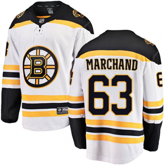 Home>NHL>Boston Bruins>Brad Marchand>Youth Boston Bruins #63 Brad Marchand Authentic White Away Fanatics Branded Breakaway NHL Jersey