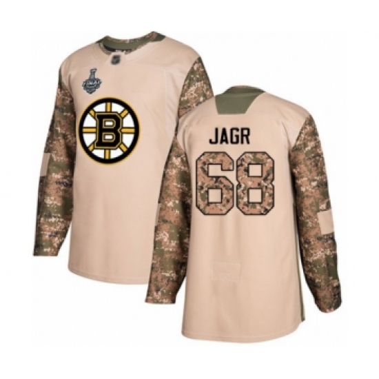 >Youth Boston Bruins #68 Jaromir Jagr Authentic Camo Veterans Day Practice 2019 Stanley Cup Final Bound Hockey Jersey