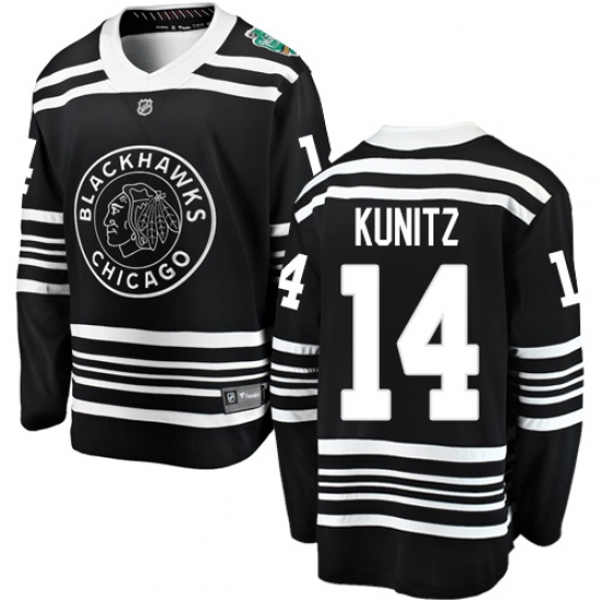 >Youth Chicago Blackhawks #14 Chris Kunitz Black 2019 Winter Classic Fanatics Branded Breakaway NHL Jersey