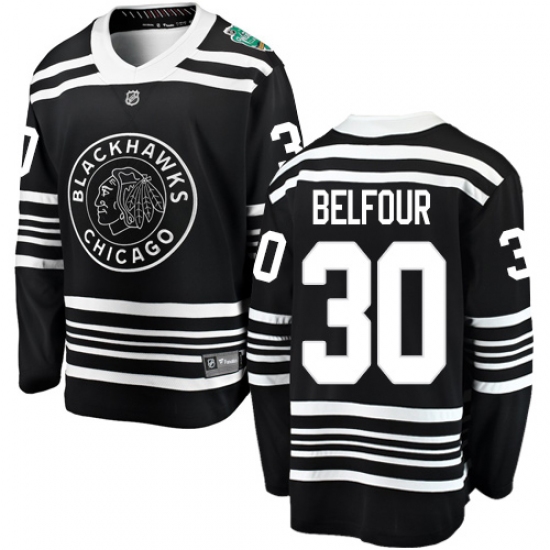 Men's Adidas Chicago Blackhawks #30 ED Belfour Authentic Black 2019 Winter Classic NHL Jersey